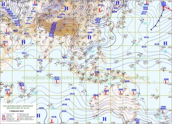 พยากรณ์อากาศสำหรับประเทศไทยวันนี้(8 ก.พ.59) เป็นดังนี้