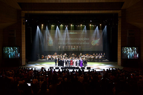 ก่อนจะปิดท้ายที่ “วงเครื่องประโคมแตรสังข์” ซึ่งประกอบด้วย สังข์, แตรงอน, แตรฝรั่ง, ฆ้องชัย และ มโหระทึก ร่วมบรรเลงกับวงดนตรีกาญจนะผลิน ในเพลง “สดุดีมหาราชา” ศิลปินทุกท่านขึ้นมาร้องเพลงนี้ร่วมกัน ต้องบอกว่าคอนเสิร์ต “93 ปี ชาลี อินทรวิจิตร เพลงหนังคู่แผ่นดิน” สร้างเสียงหัวเราะ ความสุข และรอยยิ้ม ให้กับทุกศิลปินรับเชิญและผู้ชมได้ตลอดทั้งงานเลยทีเดียว