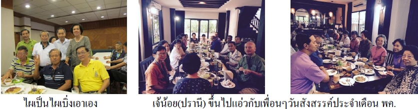 ปกติข่าวรุ่นฯจะมีข้อมูลจากรูปเหตุการณ์ในวันสังสรรค์ต่อมาวิวัฒนาการทาง Social media ก้าวหน้ามากขึ้นก็เลยได้รับข้อมูลทาง Line ทำให้ได้ข้อมูลต่างๆและรูปภาพจากเพื่อนๆมาลงให้ดูทำให้ข่าวมีความหลากหลายมากขึ้น เมื่อวันที่ 22 เมย.59 ผมไม่ได้ไปร่วมที่ สหโภชน์ เพราะหลานทำเรื่องนัดไปทำวีซ่าเข้าประเทศยุโรปหลานดูการเดินทางเห็นว่าอยู่ประเทศสเปนมากที่สุดก็เลยทำเรื่องนัดหมายทำวีซ่าที่ VFS ที่สีลมพลาซ่าได้เวลา 10.30 น.เรากับแฟนไปแต่เช้าทำเรื่องเสร็จตอนเที่ยงหลานกับแม่เขาตามไปพอตอนเย็นหลานบอกว่าวีซ่าของเรากับแฟนทำผิดประเทศต้องทำวีซ่าเข้าอิตาลี่ที่เป็นประเทศแรกที่ลงเครื่องบินหลานรับเอกสารและเงินค่าธรรมเนียมคืนมาให้ เรากับแฟนก็เลยไปทำใหม่วันจันทร์ที่ 25ใหม่ไปแต่เช้าพอไปถึงก็เจอแจ็คพ๊อตเจอทีมนักกีฬาคนพิการ 4-50 คนคู่เราได้คิวที่ 195 กว่าจะได้ทำก็บ่ายเกือบเย็นระหว่างขับรถกลับบ้านตอน 5 โมง จนท. VFS โทรเข้ามือถือบอกว่าเอกสารทางการเงินของแฟนไม่ถูกต้องให้เอาไปเปลี่ยน โชคดีที่แฟนเรายังอยู่ที่คณะบัญชีจุฬาและธนาคารที่ยังจามจุรีแสควร์ยังทำงานอยู่ก็เลยเอาเอกสารไปให้จนท.รอรับเอกสารเมื่อเกือบ 2 ทุ่ม เสียเวลาไป 2 วันแต่ก็ได้รับวีซ่าวันศุกร์ อีกประเทศ(เมือง)ที่ไปทำคือ Gibraltar เป็นแผ่นดินโพ้นทะเลของ สหราชอาณาจักรอังกฤษเป็นแหลมยื่นไปในทะเลเมดิเตอเรเนียนใต้ประเทศสเปน ทัวร์เรามีรายการเที่ยว ยิบรอลต้าวันเดียวเสียค่าทำวีซ่า 170 กว่ายูโร แพงกว่าที่ทำเข้าประเทศแชงเก้น 3 ประเทศ สิบกว่าวันเสียแค่สามพันกว่าบาทตอนทำเจ้าหน้าที่บอกว่าอาจใช้เวลา 3 อาทิตย์หรือ 1 เดือนนะ แต่จริงๆแล้วอาทิตย์เดียวก็ได้ จากการที่การไปเที่ยวยุโรปหรืออเมริกามีความยุ่งยากและต้องทำวีซ่าในขณะเดียวกันที่ ญี่ปุ่น เกาหลีและประเทศในกลุ่ม AEC ส่วนใหญ่ไม่ต้องทำวีซ่าทำให้คนหันมาเที่ยวแถบนี้กันมากขึ้น ที่เล่ามานี่ก็จะโยงบอกว่าช่วงที่ไม่ได้ไปสังสรรค์ได้ฝากให้เพื่อนๆช่วยเขียนข่าวส่งให้พวกเราทุกเดือนไม่ขาดจากการติดต่อก็ได้รับรูปจาก** รองฯสวัสดิ์ ** ฮิตเลอร์ – ไพฑูรย์ ** อิ๊ดเกะ – จิตราพรรณ ** นิด – นิตยา ** ดร.เขี้ยว – วณี ** มาลงและเขียนข่าว ส่วน ** อิ๊ดเกะ – จิตราพรรณ ** และ ** ตึ – อำพรรณ **ได้ช่วยเขียนข่าวส่งมาให้เราแต่ เกะ มีธุระส่งข่าวมาสวนกับที่เราได้นั่งเทียนส่งข่าวไปแล้วดังนั้นฉบับนี้จึงเอาข่าวที่ เกะและตึ เขียนมาลงให้อ่านดูกัน