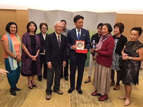 ชลาธิป ตุลย์วัฒนจิต และ สุเทพ บูลกุล นำทีมคณะนักกีฬาเทนนิสสูงอายุ จากประเทศไทย เข้าพบและมอบที่ระลึกแก่ Mr.Yoshinori Yamaguchi, Saga Prefectural Governor