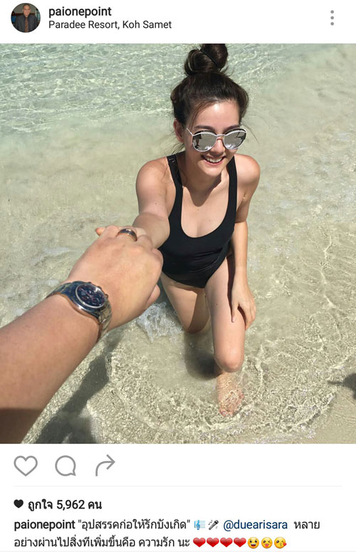 ส่วนไผ่ก็ได้แชะภาพจับมือสาวดิวและโพสต์ข้อความหวานๆ ว่า “อุปสรรคก่อให้รักบังเกิด หลายอย่างผ่านไปสิ่งทีเพิ่มขึ้นคือ ความรัก เรียกว่าความรักของทั้งคู่ดูจะหวานแบบไม่แคร์กระแสจริงๆ