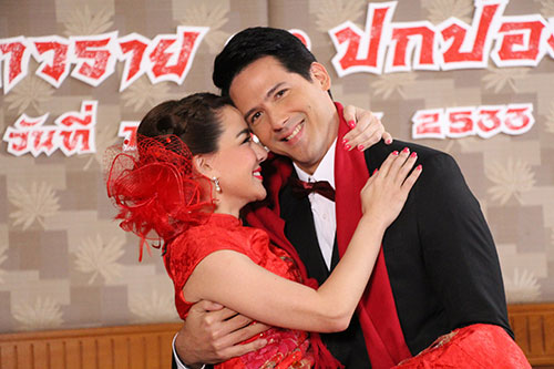 เบื้องหลังฉากนี้ถ่ายทำกันที่โรงแรมอเล็กซันเดอร์ ย่านลำสาลี ภายในโรงแรมเนรมิตเป็นงานแต่งสุดหรูตามสไตล์คนจีน ประดับประดาไปด้วยสีแดงทั้งงาน เมื่ออั๋นและนิโคลแต่งสวยหล่อกันเสร็จ ผู้กำกับ เอ๋-กษมา นิสสัยพันธุ์ เรียกทั้งสองมาหน้าเซต นิโคลมาในชุดกี่เพ้าสีแดงสด ตัดกับปากสีแดง สวย เผ็ดส่วนอั๋นมาในชุดสูททักซิโด้ สมาร์ท หล่อจนทีมงานสาวๆ กรี๊ดกันถ้วนหน้า นิโคลบอกว่าเป็นครั้งแรกที่ได้ใส่ชุดกี่เพ้า แล้วชุดโหดมาก เพราะรัดทั้งตัว ยิ่งตอนนั่งต้องๆ ค่อยๆ นั่ง ยิ่งเวลาลุกอั๋นต้องค่อยๆ ประคอง มิฉะนั้นอาจจะล้มได้ ช่วงซ้อมผู้กำกับบอกว่าถึงแม้ฉากนี้จะไม่ค่อยมีบทพูด แต่สีหน้าแววตาต้องสื่อให้รู้ว่าทั้งสองรักกันมากที่สุด ความยากอยู่ที่อั๋น เพราะโดนนิโคลทำเสน่ห์เลยยอมแต่งงานกับเขา ซ้อมกันรู้คิว ถึงเวลาถ่ายจริง ติดตามชมฉากนี้ได้ในวันพุธที่ 27 กรกฎาคม 2559 เวลา 09.00/19.50 น. ทางสถานีโทรทัศน์ช่อง 8