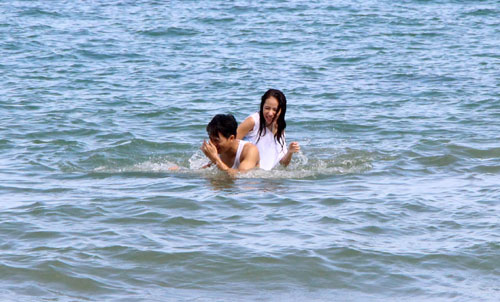 เบื้องหลังการถ่ายทำฉากนี้ได้ยกกองกันไปถ่ายทำกันที่หาดส่วนตัววังแก้ว รีสอร์ท จ.ระยอง แบงค์และแนน มาในชุดเสื้อกล้ามสุดชิว โดยเฉพาะแนนนั้นขอแอบเซ็กซี่ด้วยใส่เป็นเสื้อทูพีชข้างในแล้วใส่เสื้อสีขาวทับแต่พอโดนน้ำทะเลก็เผยให้เห็นหุ่นเซ็กซี่พอแดดร่มผู้กำกับเอ๋-กษมา เรียกทั้งสองลงหาดกันเลยเนื่องด้วยฉากนี้บทพูดค่อนข้างน้อยผู้กำกับเลยให้ทั้งสองคนเน้นเรื่องของแอ๊กติ้งกันให้คล่องโดยเฉพาะเรื่องของความสวีทหวานจะต้องเล่นออกมาให้คนดูเชื่อว่าสองคนรักกันสุดๆ ที่สำคัญฉากนี้ค่อนข้างถึงเนื้อถึงตัว ดังนั้นก่อนถ่ายแบงค์เลยขอโทษแนนก่อน ส่วนแนนก็บอกแบงค์เต็มที่ไปเลยพี่ เพื่อการแสดงจะได้ไม่ต้องเทคบ่อยด้วย แค่ระหว่างซ้อมฉากทั้งคู่ก็เกือบจะจูบกันแล้ว จนผู้กำกับต้องสั่งเบรกว่าขอให้เล่นประมาณไหนแค่ไหน เมื่อซ้อมกันจนเข้าใจกันแล้วก็เริ่มถ่ายจริง ซึ่งภาพที่ออกมาจะมีความหวานซึ้งขนาดไหน ติดตามชมฉากนี้ได้ในวันพฤหัสบดีที่ 1 กันยายน 2559 เวลา 09.00/19.50 น. ทางสถานีโทรทัศน์ช่อง 8