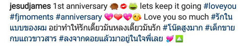 ล่าสุด ทั้งคู่ก็ได้ลงภาพผ่านอินสตาแกรมของอีกฝ่าย ขณะที่กำลังไปดินเนอร์เนื่องในวันครบรอบ 1 ปี ซึ่งถึงแม้จะเป็นร้านอาหารธรรมดา แต่ก็เต็มไปด้วยความน่ารัก เรียกว่าเป็นคู่รักที่มักจะเติมความหวานแบบมุ้งมิ้งฟรุ้งฟริ้งกันสุดๆ เลยทีเดียว