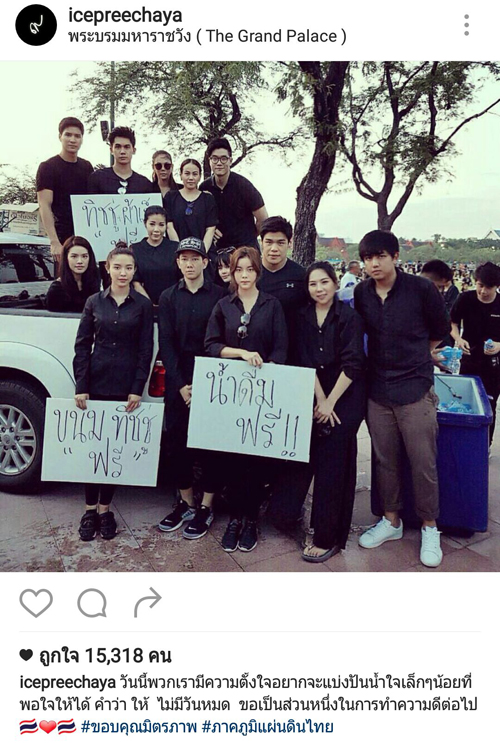 15 ต.ค.59 เป็นความสูญเสียครั้งใหญ่ซึ่งนำความโศกเศร้ามาสู่ชาวไทยทั้งแผ่นดิน กับการเสด็จสู่สวรรคาลัยของพระบาทสมเด็จพระปรมินทรมหาภูมิพลอดุลยเดช รวมทั้งเหล่าคนบันเทิง ศิลปินดาราไทย ก็ต่างโพสต์ข้อความผ่านอินสตาแกรมส่วนตัวถวายความอาลัย และไปร่วมถวายสักการะพระบรมศพในหลวงในพระบรมโกศ