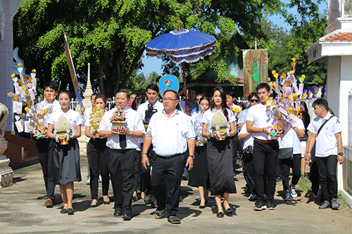 งานนี้คณะบุญชาวช่อง 7 สี ออกเดินทางสู่ จ.นครสวรรค์กันตั้งแต่เช้าตรู่ และเมื่อไปถึงวัดโคกกร่าง ก็ได้รับความอบอุ่นจากชาวบ้านที่มาให้การดูแลอย่างเป็นกันเอง ณ ศาลาการเปรียญ ก่อนเตรียมความพร้อมเพื่อประกอบพิธีการแห่กฐินสามัคคี เวียนรอบโบสถ์ 3 รอบ ตามรูปแบบขนบธรรมเนียมประเพณีไทย โดย สี่สาว โบ กุญแจซอล ตูน บี และสามหนุ่มบอส ซัน นัท รับหน้าที่ถือพานปัจจัยต่างๆ นำขบวน ทั้ง พานดอกบัว พานใบโพธิ์เงิน โพธิ์ทอง และพุ่มกฐินจากผู้มีจิตศรัทธาของชาวช่อง 7 สี และชาวบ้านในพื้นที่ ก่อนเข้าศาลาการเปรียญทำพิธีส่งมอบจตุปัจจัยไทยธรรมให้กับทางวัด พร้อมทำบุญถวายสังฆทาน ทำพิธีกรวดน้ำ รับศีลรับพรเพื่อความเป็นสิริมงคล ก่อนเข้าสู่กิจกรรมเพื่อความสามัคคีโดยส่งตัวแทนนักแสดงชายร่วมกิจกรรมเตะฟุตบอลกระชับมิตรกับคนในหมู่บ้าน เพื่อเป็นการมอบความสุขและรอยยิ้ม ตอบแทนสู่แฟน 7 สี ที่ให้การสนับสนุนผลงานของสถานีฯ ด้วยดีมาตลอด 49 ปี