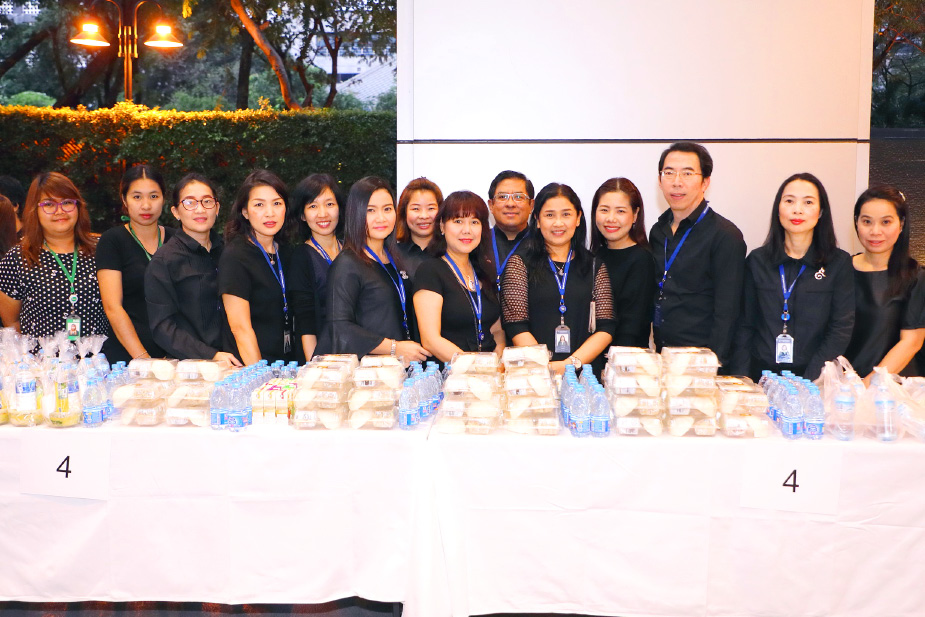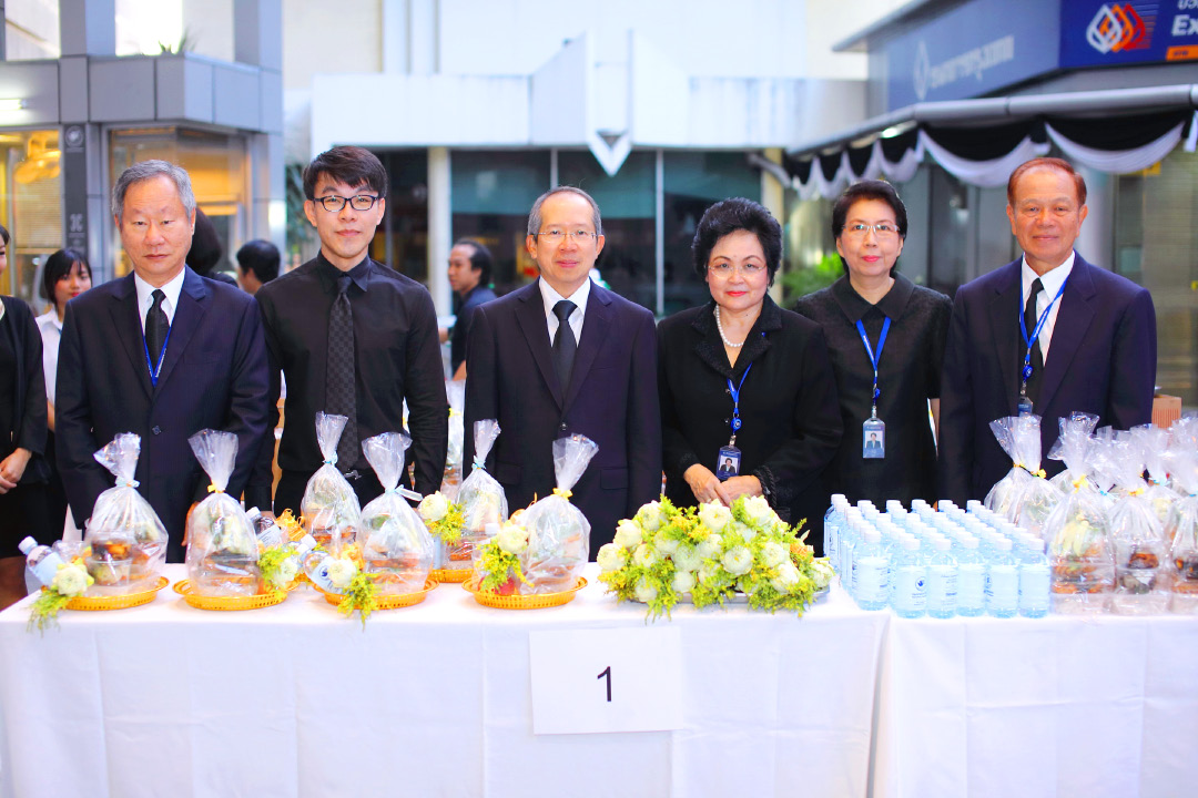 ประธานกรรมการ พร้อมด้วย ดร.อภิสิทธิ์ อนันตนาถรัตน กรรมการผู้อำนวยการใหญ่, พนัส ธีรวณิชย์กุล กรรมการและประธานคณะผู้บริหาร และคณะผู้บริหาร เตรียมร่วมบุญตักบาตร