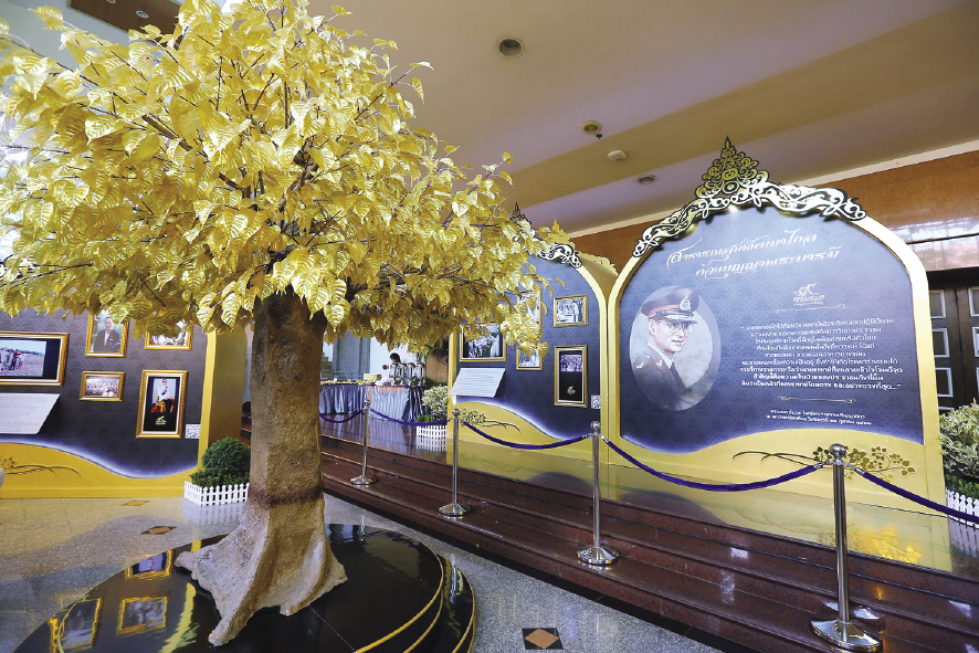 ภายในงาน บริเวณกลางโถงด้านหน้า หอประชุมใหญ่ได้จัดให้มีนิทรรศการ “๙ ตามพ่อ สานต่อพระราชปณิธาน” ขึ้น เพื่อถ่ายทอดพระอัจฉริยภาพในด้านต่างๆ ของพระบาทสมเด็จพระปรมินทรมหาภูมิพลอดุลยเดช นอกจากนี้ ยังได้นำต้นโพธิ์ทองมาตั้งอยู่เพื่อให้ประชาชนทั่วไปได้เขียนปณิธานของตนเองที่จะทำเพื่อผู้อื่นลงบนแผ่นใบโพธิ์ทองเหลือง ซึ่งใบโพธิ์ทั้ง 1 ล้านใบ จะนำมาหล่อพระพุทธรูปเพื่อนำไปมอบให้กับโรงเรียนทั่วประเทศต่อไป