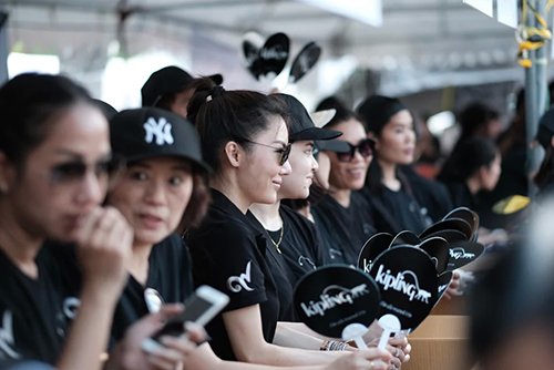 เราก็เลยรู้สึกว่า คนเยอะนี่ขนาดตอนกลางคืน สี่ทุ่มครึ่งคนยังเยอะขนาดนี้ แล้วตอนกลางวันจะเยอะขนาดไหน ยิ่งคนมาจากต่างจังหวัดด้วย เขามากันเป็นรถทัวร์เพื่อจะมาแสดงความไว้อาลัย ก็เลยรู้สึกว่า…เราทำพัด แจกดีไหม ก็เลยถามกับทาง Kipling เบลเยียม ทางเมืองนอก ว่าเราขอทำพัดนะ