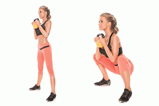 ท่า Goblet Squat จะมีอุปกรณ์เสริมอย่างดัมเบลหรือเคตเทิลเบลมาเพิ่มความยากในอีกระดับหนึ่ง เป็นท่าที่ช่วยสร้างความแข็งแกร่งให้กล้ามเนื้อได้ในหลายๆ ส่วน ส่งผลดีต่อการเบิร์นไขมันในร่างกายที่มีประสิทธิภาพ