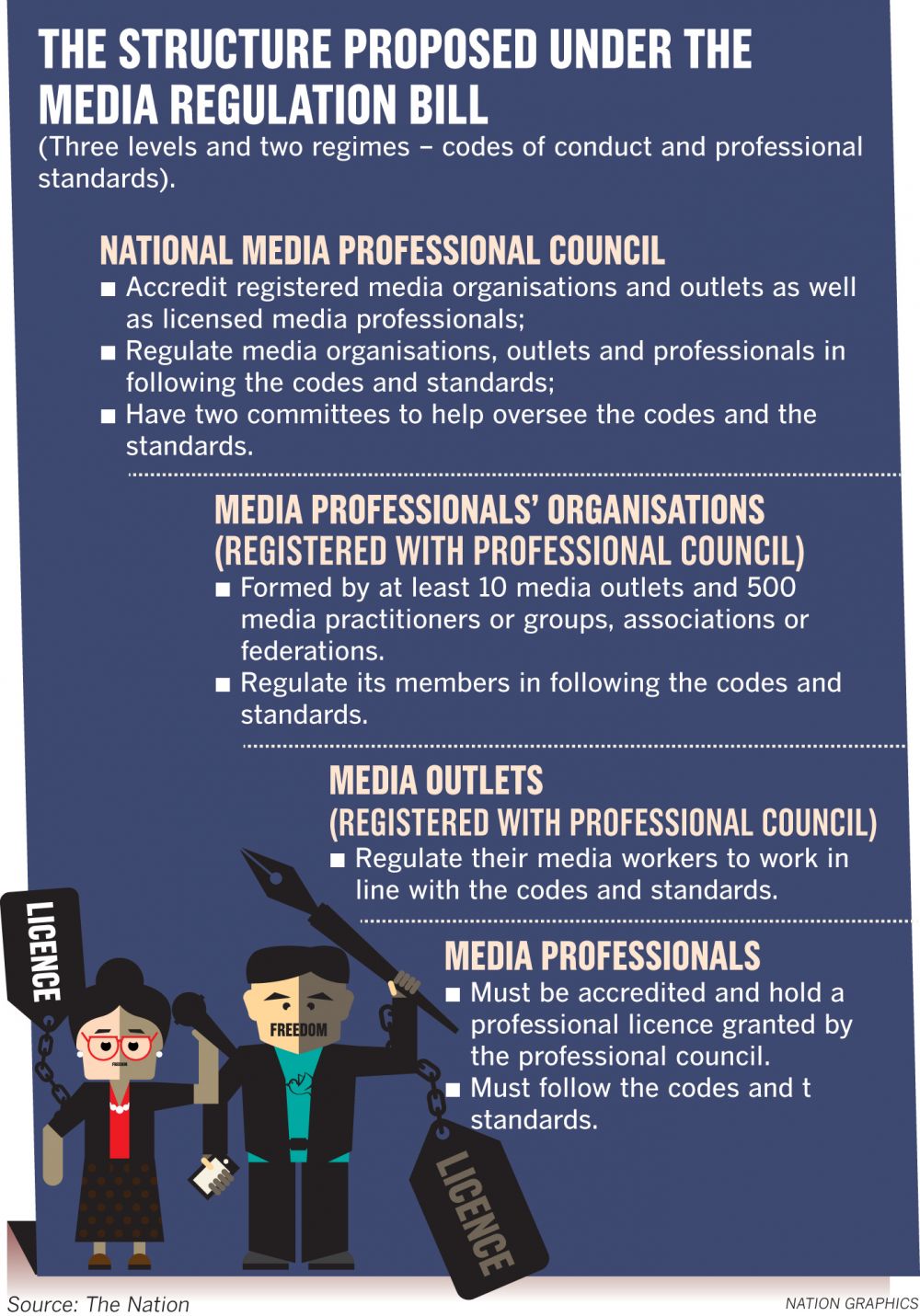 The bill would set a punishment for media practising without a licence at three years imprisonment and a fine of up to Bt60,000.