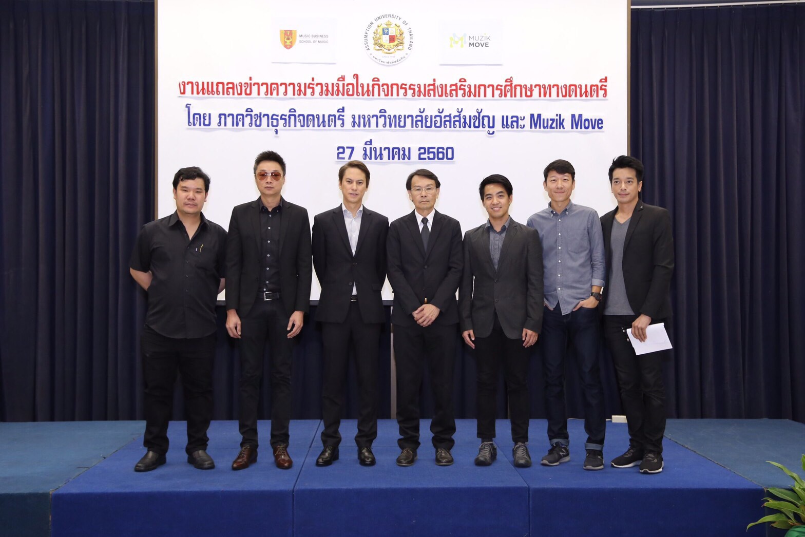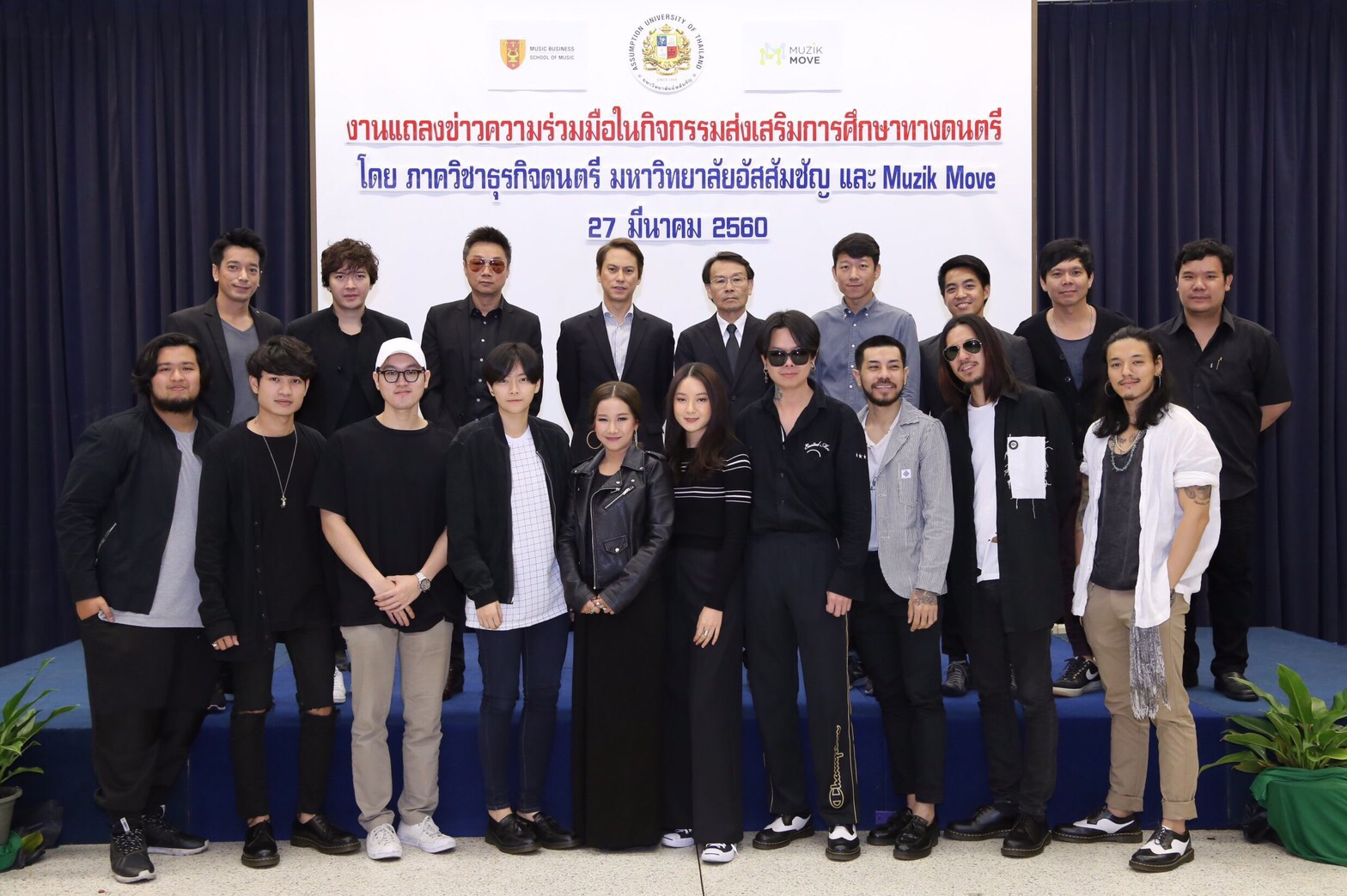 บริษัท มิวซิกมูฟ จำกัด (Muzik Move) นับเป็นหนึ่งในธุรกิจค่ายเพลงยุคใหม่ ที่เต็มไปด้วยบุคลากรคุณภาพทางด้านดนตรี ทั้งเบื้องหน้าและเบื้องหลัง สร้างสรรค์ผลงานดีๆและผลิตศิลปินคุณภาพจนประสบความสำเร็จมาแล้วมากมาย “คุณจุ๊บ – วุฒินันต์ ภิรมย์ภักดี” กรรมการผู้จัดการ บริษัท มิวซิกมูฟ จำกัด(MUZIK MOVE) จึงเล็งเห็นการวางรากฐานการสร้างบุคลากรให้กับอุตสาหกรรมดนตรี ต้องมีคนรุ่นใหม่ๆที่มีความสามารถ ประกอบกับองค์ความรู้ใหม่ๆและความเข้าใจในอุตสาหกรรมดนตรีที่เปลี่ยนแปลงไปอย่างรวดเร็ว จึงได้จับมือกับ “ภาคธุรกิจดนตรี มหาวิทยาลัยอัสสัมชัญ” ร่วมมือในการส่งเสริมการศึกษาดนตรี ให้มีศักยภาพ และกระจายออกให้มากยิ่งขึ้น