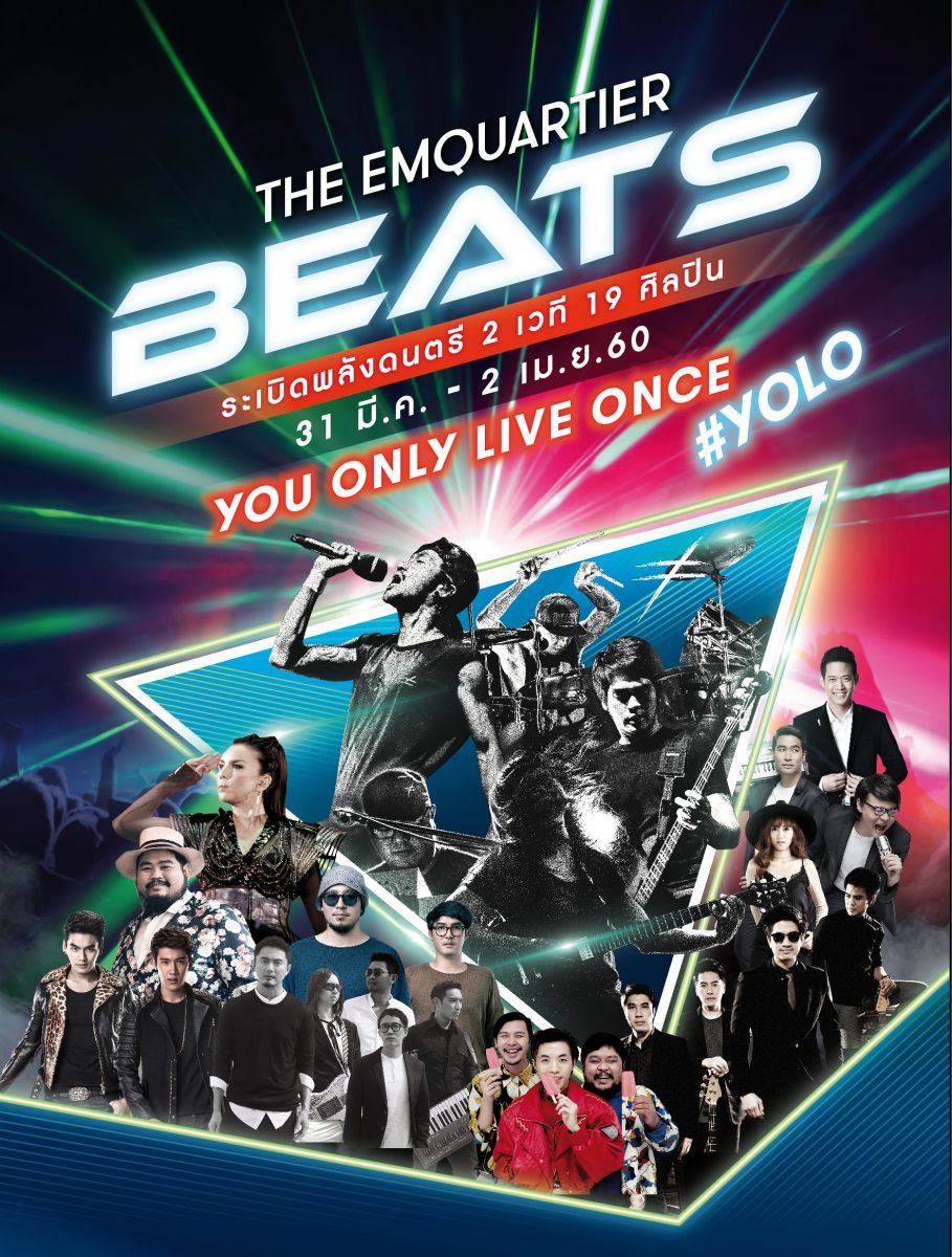 ภายใต้คอนเซ็ป “YOU ONLY LIVE ONCE” การกลับมาอีกครั้งของเทศกาลดนตรีสุดยิ่งใหญ่ใจกลางกรุงเทพ ที่คราวนี้อัดแน่นไปด้วยศิลปินชั้นแนวหน้ากว่า 19 ศิลปิน ประชัน 2 เวที ดึง BODYSLAM เล่นคอนเสิร์ตแบบจัดเต็ม กลางศูนย์การค้าครั้งแรก พร้อมโชว์เต็มรูปแบบจากศิลปินชั้นแนวหน้าขวัญใจคนไทยทั้งประเทศ อาทิ คริสติน่า อากีล่าร์, ป๊อป ปองกูล, ฮั่น อิสริยะ, แกงส้ม ธนทัต, ตู่ ภพธร, ลิปตา, Polycat, Jetset’er และอีกมากมายที่จะมาระเบิดความมันส์และส่งความสนุกแบบอัดแน่น โดยเปิดให้ชมฟรี ระหว่างวันที่ 31 มีนาคม – 2 เมษายน ศกนี้ ณ ควอเทียร์ อเวนิว ชั้น G และ ควอเทียร์ วอเตอร์การ์เด้นท์ ชั้น 5 ศูนย์การค้า ดิ เอ็มควอเทียร์