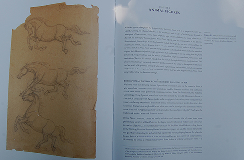 ส่วนที่จัดแสดงในวันนริศ ที่มีการจัดแสดงโชว์ผลงานของพระองค์ในบ้านทรงไทยนั้น ไม่ได้เป็นทุกส่วนที่อยู่ในหนังสือเล่มนี้ เป็นแค่ที่แสดงในวันงานนริศ ตั้งแต่ดิฉันยังเป็นเด็ก เป็นแค่ส่วนน้อยนิดเดียวเอง ตอนที่ท่านย่าอนุญาตให้เข้าไปดูผลงานของพระองค์ได้ ท่านก็อนุญาตที่จะให้รวบรวมแล้วตีพิมพ์ เพื่อประโยชน์ทางด้านการศึกษา ท่านเห็นว่าผลงานภาพร่างฝีพระหัตถ์น่าที่จะเป็นประโยชน์