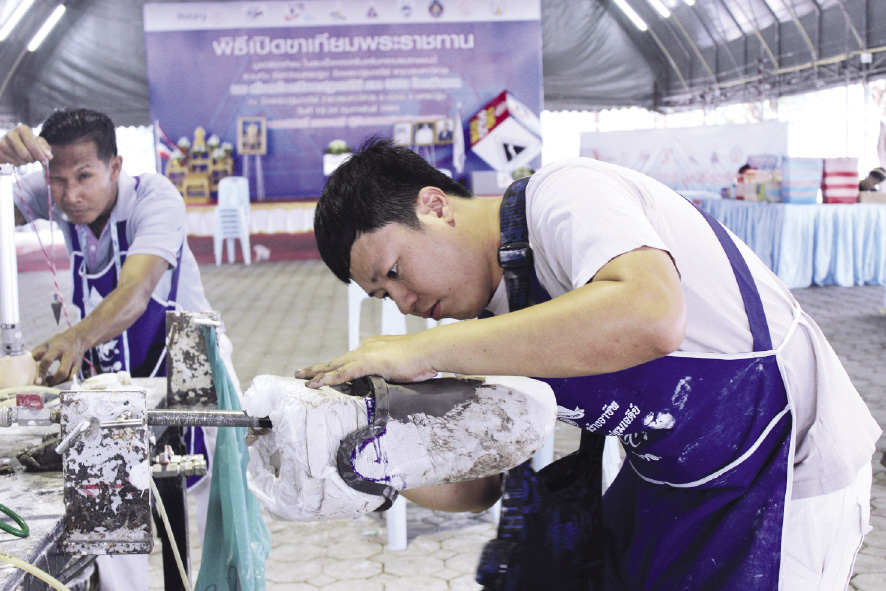 รศ.นพ.วัชระ กล่าวอีกว่า ในส่วนของช่างวัดรอบขา สำหรับทำ “เบ้าหลอม” ขาเทียม ส่วนใหญ่จะเป็นช่างที่ต้องผ่านหลักสูตรฝึกอบรมเป็นระยะเวลา 5 เดือนของมูลนิธิขาเทียมฯ ซึ่งเป็นส่วนหนึ่งในการ “สร้างอาชีพให้แก่ผู้พิการ” อีกทั้งยังได้ประโยชน์มาก เพราะการจัดทำเบ้าหลอมจำเป็นต้อง “พิถีพิถัน” เอาใจใส่เป็นพิเศษ เนื่องจากตัวช่างเองก็ใส่ขาเทียมเหมือนกัน จึง “เข้าถึง” ผู้พิการได้เป็นอย่างดี รู้ว่าจุดไหนสำคัญไม่ควรมองข้าม