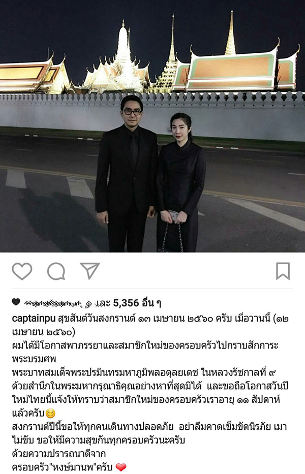 13 เม.ย.60 ต้องขอแสดงความยินดีกับ คู่รักต่างวัยถึง 12 ปี อย่าง หนุ่ม “กัปตัน ภูธเนศ” และ “เอ้ก บุษกร” ที่ได้ประกาศข่าวดีต้อนรับสงกรานต์ ว่าตอนนี้กำลังมีสมาชิกครอบครัวใหม่ได้ 11 สัปดาห์แล้ว งานนี้เพื่อนๆ และแฟนคลับก็ต่างเข้ามาแสดงความยินดีกันอย่างล้นหลามเลยทีเดียว