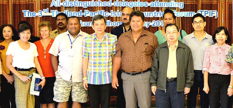 สามพรานโมเดล : อรุษ นวราช กก.ผจก.สามพราน ริเวอร์ไซด์ และ เลขานุการมูลนิธิสังคมสุขใจ ต้อนรับ ชาติชาย อุทัยพันธ์ ผวจ.นครปฐม พร้อมคณะจากประเทศหมู่เกาะแปซิฟิก 14 ประเทศ ที่มาศึกษาดูงานด้านการท่องเที่ยวเชิงวัฒนธรรมและการเกษตร และชมกิจกรรม ที่โรงแรมสามพรานริเวอร์ไซด์ จ.นครปฐม