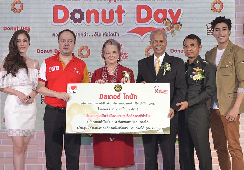 แด่ทหารกล้า : ธีระเดช จิราธิวัฒน์ ปธ.จนท.บห.และ แมรี่ จิราธิวัฒน์ กก.บห.บจก.เซ็นทรัลเรสตอรองส์ กรุ๊ป จำกัด ร่วมกันมอบเงินที่ได้จากการประมูลโดนัทหน้าพิเศษและของรักดารา ให้แก่ ประสิทธิ์ ชูเมือง รองเลขาธิการ ศอ.บต.เพื่อสมทบทุนซื้อสิ่งของจำเป็นมอบให้แก่ทหารผู้ปฏิบัติหน้าที่ใน 3 จังหวัดชายแดนภาคใต้
