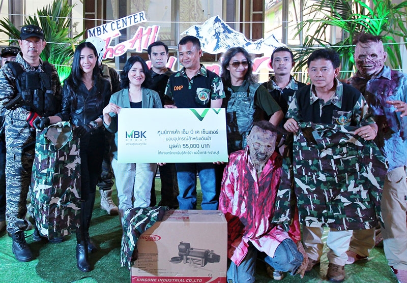 สนับสนุนงานอนุรักษ์ทรัพยากรธรรมชาติ : ภัคณิพัชญ์ ชื่นจิตต์ศิริ ผอ.ฝ่ายการตลาด บมจ.เอ็ม บี เค มอบอุปกรณ์สำหรับเดินป่า มูลค่า 55,000 บาท ให้แก่ ประทีป เหิมพยัคฆ์ หัวหน้าเขตรักษาพันธุ์สัตว์ป่า แม่น้ำภาชี จ.ราชบุรี ในงาน MBK Center The All Adventure ที่ ศูนย์การค้าเอ็ม บี เค เซ็นเตอร์