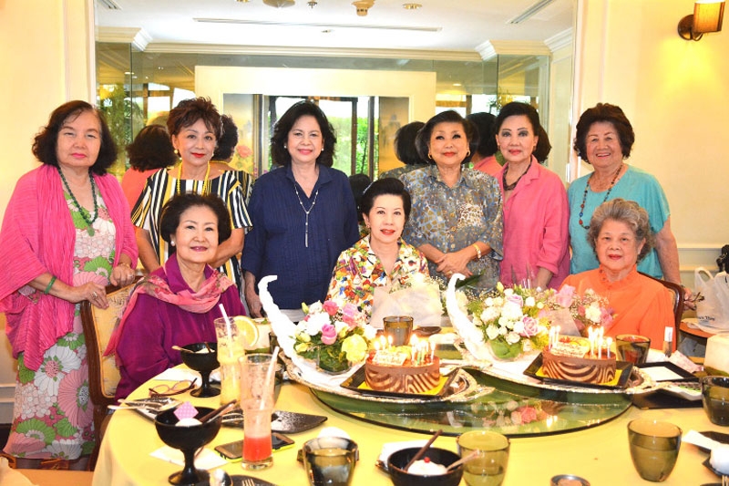 ฉลองวันเกิด : คุณหญิงชโลบล จารุรัตน์, พล.อ.ท.หญิงสหัทยา ประภาวัต, เฉิดโฉม เจียรนัย และกลุ่มเพื่อนสนิท จัดงานเลี้ยงฉลองวันเกิดแด่ ท่านผู้หญิงเหมือนจิต ภิรมย์ภักดี และ คุณหญิงเฉิดฉัน แสงรุจิ ณ ห้องอาหารเวียดนาม เธียนดอง โรงแรมดุสิตธานี กรุงเทพฯ