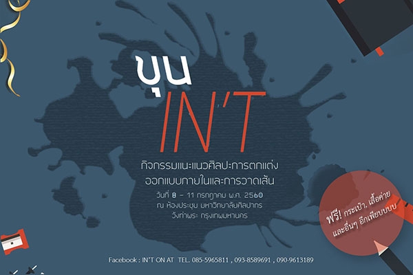 เกด-ชญาณ์นันท์ พิพัฒน์ชยกุล นักแสดงสังกัด โมโน ทาเลนท์ สตูดิโอ, ผู้ประกาศช่องMONO 29 (โมโน ทเวนตี้ไนน์) ดีเจ คลื่นวิทยุ โมโน เฟรช 91.5 อดีตศิษย์เก่า คณะวิศวกรรมศาสตร์และเทคโนโลยีอุตสาหกรรม สาขาปิโตรเคมีและวัสดุพอลิเมอร์ รุ่น matse17 มหาวิทยาลัยศิลปากร กล่าวเชิญชวน น้องๆ ร่วมค่ายแนะแนวศิลปะการออกแบบภายในและการวาดเส้น IN’T ON AT ครั้งที่ 1 ประเดิมซีซั่นแรกกับตอน ขุน IN’T ซึ่งจัดขึ้นโดยเหล่าบรรดานักศึกษาปี 2 ภาควิชาออกแบบตกแต่งภายใน คณะมัณฑนศิลป์ มหาวิทยาลัยศิลปกร เป็นครั้งแรก
