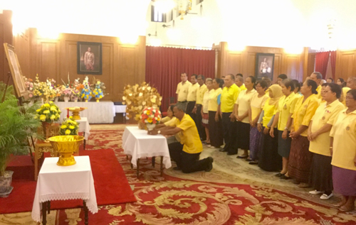 28 ก.ย.59 ที่ศาลาสหทัยสมาคม ในพระบรมมหาราชวัง สำนักพระราชวัง เปิดให้ลงนามถวายพระพรพระบาทสมเด็จพระเจ้าอยู่หัว ตั้งแต่เวลา 08.30-16.30 น. ทุกวันไม่เว้นวันหยุดราชการ โดยตลอดวันนี้ได้มีตัวแทนหน่วยงานภาครัฐ-เอกชน ผู้นำท้องถิ่น รวมถึงประชาชนทั่วไปทั้งในกรุงเทพฯ และจังหวัดต่างๆ พร้อมใจสวมเสื้อสีเหลืองนำพานพุ่มดอกไม้ แจกันดอกไม้ และสิ่งของประจำถิ่นมาทูลเกล้าฯ ถวายพระบาทสมเด็จพระเจ้าอยู่หัว ด้วยความจงรักภักดีและสำนึกในพระมหากรุณาธิคุณ และลงนามถวายพระพรขอให้ทรงหายจากพระอาการประชวรในเร็ววัน มีพระชนมพรรษายิ่งยืนนาน เพื่อเป็นร่มโพธิ์ร่มไทรของเหล่าพสกนิกรชาวไทยตลอดไป อาทิ ชมรมจิตรอาสา โรงพยาบาลบุรีรัมย์ จ.บุรีรัมย์, ชมรมสร้างเสริมสุขภาพ ผู้สูงอายุ จ.อำนาจเจริญ, คณะกรรมการสภานักเรียนระดับประเทศ ประจำปี 2559 พร้อมสภานักเรียน, ชมรมอดีตพนักงานการท่องเที่ยวแห่งประเทศไทย, คณะผู้สูงอายุ ต.ตลาด อ.เมือง จ.มหาสารคาม, คณะครูและนักเรียน โรงเรียนบ้านร่องระกำ อ.ชะอำ จ.เพชรบุรี, ผู้แทนครู อาจารย์ และบุคลากร วิทยาลัยเทคนิคน่าน จ.น่าน, ชมรมกำนัน-ผู้ใหญ่บ้านแห่งประเทศไทย, คณะกรรมการสาขาวิศวกรรมไฟฟ้า วิศวกรรมสถาน แห่งประเทศไทย ในพระบรมราชูปถัมภ์, คณะนักเรียนเตรียมทหารรุ่นที่ 28, นางศรีวัฒนา ตัณฑประศาสน์ ซ.เกิดทรัพย์ บางขุนนนท์ อ.บางกอกน้อย กทม.ทูลเกล้าฯ ถวายเงินโดยเสด็จฯพระราชกุศล ตามพระราชอัธยาศัย จำนวน 100,000 บาท