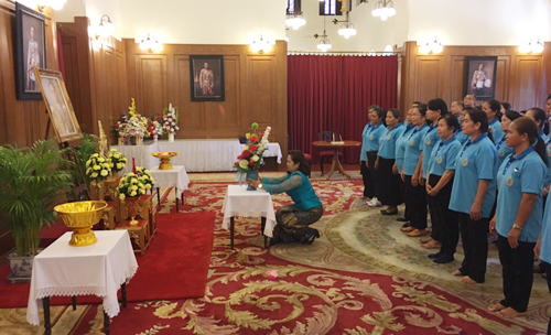 2 ต.ค.59 ที่ศาลาสหทัยสมาคม ในพระบรมมหาราชวัง สำนักพระราชวังเปิดให้ประชาชนลงนามถวายพระพรพระบาทสมเด็จพระเจ้าอยู่หัว ตลอดทั้งวันมีคณะบุคคล หน่วยงานภาครัฐ เอกชน ตลอดจนประชาชนจำนวนมาก เดินทางนำพานพุ่มดอกไม้ แจกันดอกไม้ และสิ่งของต่างๆ มาทูลเกล้าฯ ถวาย พร้อมร่วมลงนามถวายพระพรขอให้ทรงมีพระพลานามัยแข็งแรงบูรณยิ่งขึ้น หายจากพระอาการประชวรในเร็ววัน อาทิ สมาคมแพทย์แผนไทยแห่งประเทศไทย สาขาจังหวัดนครนายก, โครงการสานใจไทยสู่ใจใต้ มูลนิธิรัฐบุรุษพลเอกเปรม ติณสูลานนท์ รุ่นที่ 29 นำโดย พล.ท.สมบูรณ์ ศรีมณฑา, ชมรมสวนสุขภาพสายไหม เขตสายไหม กทม., ศูนย์ปฏิบัติการลูกเสือชาวบ้าน ในพระบรมราชานุเคราะห์, ชมรมกำนันผู้ใหญ่บ้าน อ.กุมภวาปี จ.อุดรธานี, สถาบันพลังจิตตานุภาพ มหาวิทยาลัยราชภัฏราชนครินทร์ จ.ฉะเชิงเทรา,