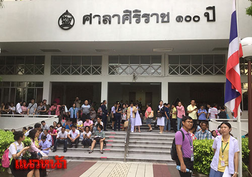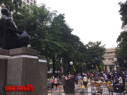 12 ต.ค.59 ผู้สื่อข่าวรายงานบรรยากาศ ที่โรงพยาบาลศิริราช ภายหลังสำนักพระราชวังออกแถลงการณ์ เรื่อง พระบาทสมเด็จพระเจ้าอยู่หัว เสด็จฯ มาประทับ ณ โรงพยาบาลศิริราช ฉบับที่ 37 และในวันที่ 12 ต.ค. ตั้งแต่ช่วงเช้าได้มีพสกนิกรจากทั่วทุกสารทิศที่พร้อมใจกันสวมเสื้อสีเหลืองและสีชมพูเดินทางมาสักการะพระราชานุสาวรีย์สมเด็จพระมหิตลาธิเบศร อดุลยเดชวิกรม พระบรมราชชนก และพระรูปหล่อสมเด็จพระศรีนครินทราบรมราชชนนี ณ ศาลาศิริราช 100 ปี และร่วมกันสวดมนต์ บท “โพชฌังคปริตร” เพื่อตั้งจิตอธิษฐานส่งไปยังชั้น 16 อาคารเฉลิมพระเกียรติ ที่พระองค์ประทับอยู่ขอให้ทรงหายจากพระอาการประชวร โดยในช่วงบ่ายวันนี้ประชาชนและสื่อมวลชนทั้งไทยและต่างประเทศ เดินทางมาปักหลักเฝ้าติดตามสถานการณ์อย่างใกล้ชิด