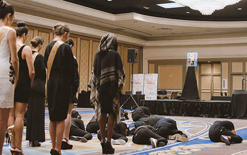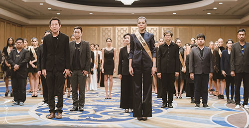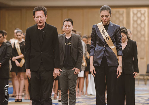คณะเจ้าภาพและผู้จัดการประกวด มิสแกรนด์ อินเตอร์เนชั่นแนล 2016 นำโดย นายณวัฒน์ อิสรไกรศีล ประธานและผู้ก่อตั้งเวทีการประกวด มิสแกรนด์ อินเตอร์เนชั่นแนล พร้อมทีมงานและนางงามผู้เข้าประกวด มิสแกรนด์ อินเตอร์เนชั่นแนล 2016 จำนวน 80 ประเทศทั่วโลก พร้อมเพรียงในชุดขาวดำ รวมทั้ง ฝ้าย สุภาพร มะลิซ้อน มิสแกรนด์ ไทยแลนด์ 2016