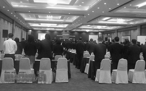 ทั้งนี้ สำหรับบรรยากาศในการสัมมนา ทุกคนทั้งชายหญิงได้ร่วมกันแต่งกายในชุดสูทสีดำ ซึ่งบรรยากาศเต็มไปด้วยความโศกเศร้า