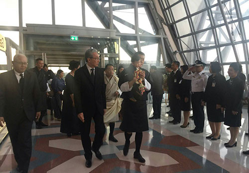 15 ต.ค. 59 มีรายงานข่าวแจ้งว่า เมื่อช่วงเย็นที่ผ่านมา ที่ท่าอากาศยานสนามบินสุวรรณภูมิ สมเด็จพระราชาธิบดีจิกมี เคเซอร์ นัมเกล วังชุก พระมหากษัตริย์แห่งราชอาณาจักรภูฏาน เสด็จพระราชดำเนินถึงประเทศไทยแล้ว เพื่อร่วมพิธีบำเพ็ญพระราชกุศลพระบรมศพ โดยมีเจ้าหน้าที่ให้การต้อนรับอย่างสมพระเกียรติ
