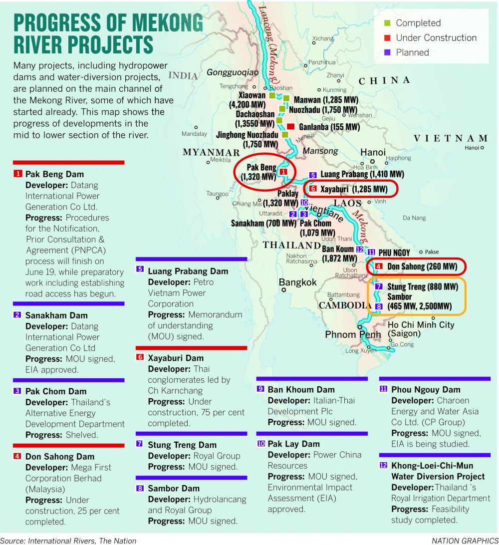 He added that the project would not cause a water shortage downstream, as it would mostly operate in the rainy season. Moreover, the water levels of the Mekong were already regulated by Chinese dams and there was more water flowing in the dry season.