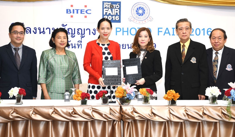 “โฟโต้แฟร์ 2016” : บุษราภรณ์ พรไพศาลศักดิ์ นายกสมาคมธุรกิจการถ่ายภาพ และ ปนิษฐา บุรี กรรมการผู้จัดการ ศูนย์ฯไบเทค ร่วมลงนามในสัญญาเช่าพื้นที่จัดงาน “โฟโต้แฟร์ 2016” โดยจัดขึ้นระหว่างวันพุธที่ 30 พฤศจิกายน-วันอาทิตย์ที่ 4 ธันวาคม 2559 ที่ศูนย์ฯ ไบเทค บางนา ถนนบางนา ตราด