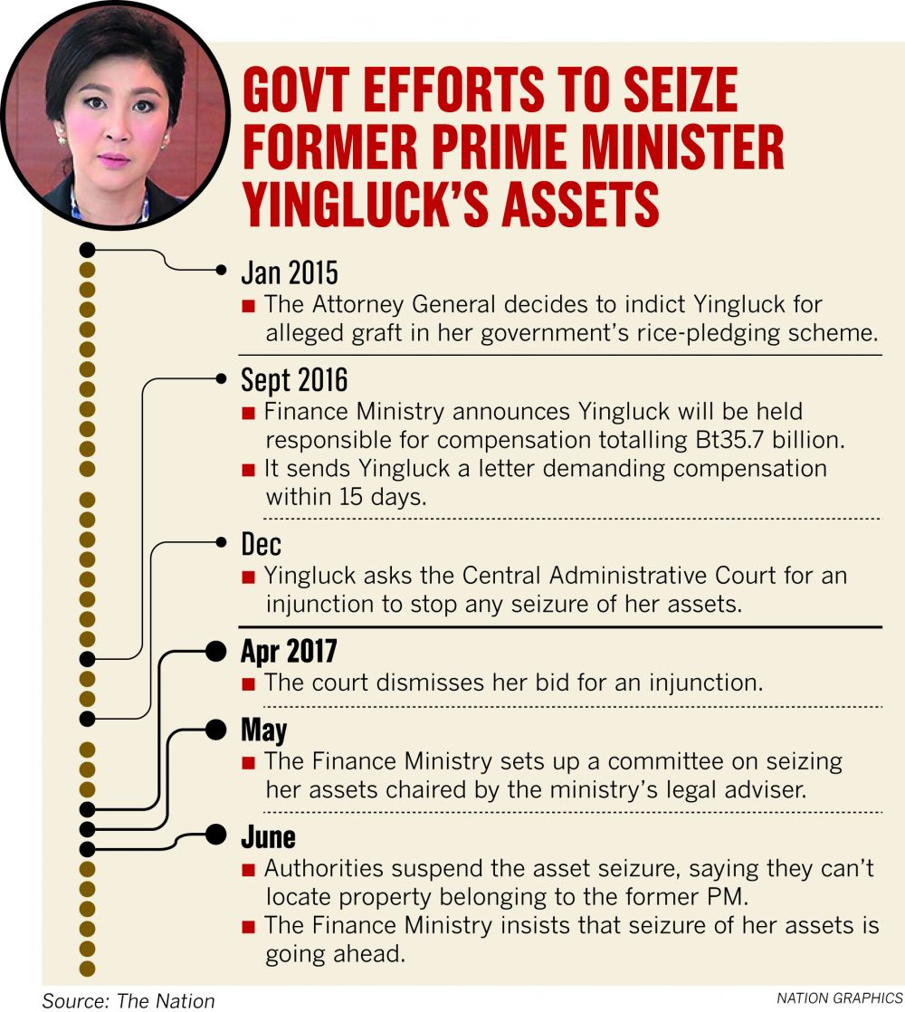 The Legal Execution Department suspended its operation to freeze Bt35.7 billion of Yingluck’s assets after the Finance Ministry, as the damaged party, failed to provide details about her valuables and properties.
