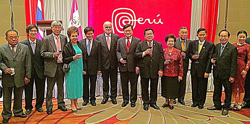 ฉลองวันชาติ : H.E. Mr.Felix Denegri เอกอัครราชทูตเปรูปประจำ ราชอาณาจักรไทย จัดงานเลี้ยงเฉลิมฉลองในโอกาสครบรอบ 195 ปี วันชาติเปรู โดยมี ศ.ดร.เกรียงศักดิ์ เจริญวงศ์ศักดิ์ มาร่วม ท่ามกลางทูตานุทูต และ แขกผู้มีเกียรติต่างๆ มากมาย ณ โรงแรม Marriott Bangkok Hotel
