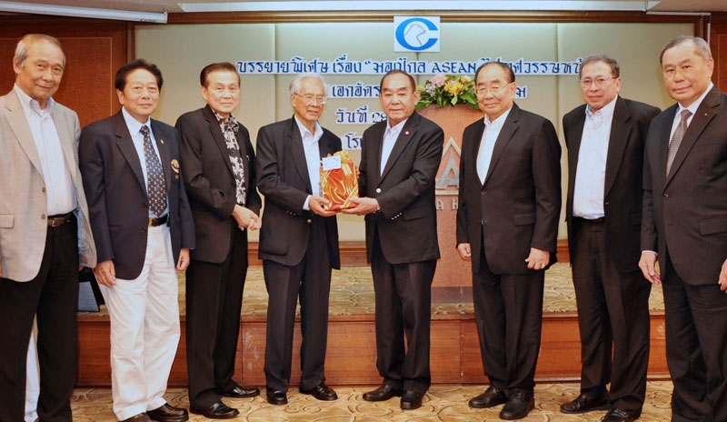 ทันยุค พล.ต.อ.โกวิท ภักดีภูมิ นายกสมาคมเพื่อนแคลิฟอร์เนีย มอบของที่ระลึกแด่ อัษฎา ชัยนามอดีตผู้แทนถาวรไทยประจำสหประชาชาติ ที่มาบรรยายพิเศษเรื่อง “มองไกล ASEAN ไปทศวรรษหน้า” โดยมี ธวัชชัย ทวีศรี, รศ.ดร.อัษฎางค์ ปาณิกบุตร และดร.อมร เตชะหรูวิจิตร ร่วมงาน ที่โรงแรมเอเชีย