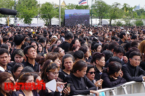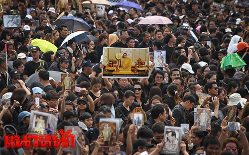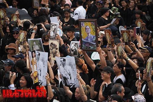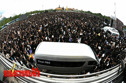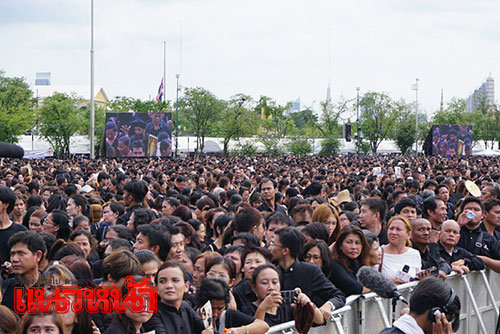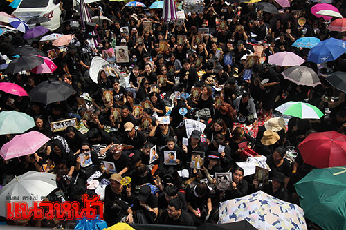 ข่าวที่เกี่ยวข้อง :ประชาชนล้นสนามหลวง แต่งชุดดำเตรียมร้องเพลง’สรรเสริญฯ’ (ประมวลภาพ)