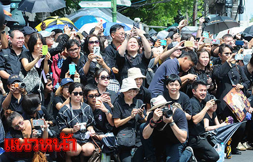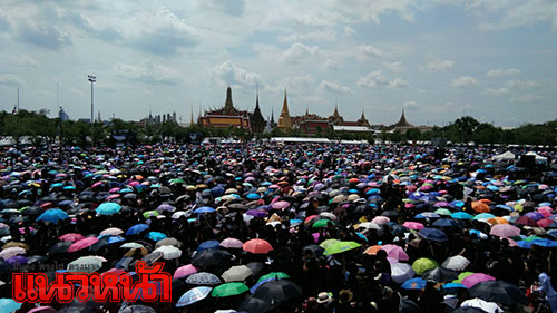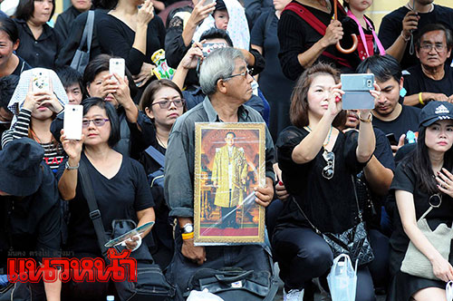 22 ต.ค. 59 บรรยากาศบริเวณรอบๆ พื้นที่สนามหลวง และหน้าพระบรมมหาราชวัง เต็มไปด้วยประชาชนที่มาค้างคืนจับจองพื้นที่ และประชาชนที่ทยอยเข้ามาเพื่อที่จะเตรียมร้องเพลงสรรเสริญพระบารมีใน ครั้งประวัติศาสตร์ในวันนี้ เพื่อแสดงความอาลัย และรำลึกถึงพระมหากรุณาธิคุณของพระบาทสมเด็จพระปรมิทรมหาภูพลอดุลยเดช