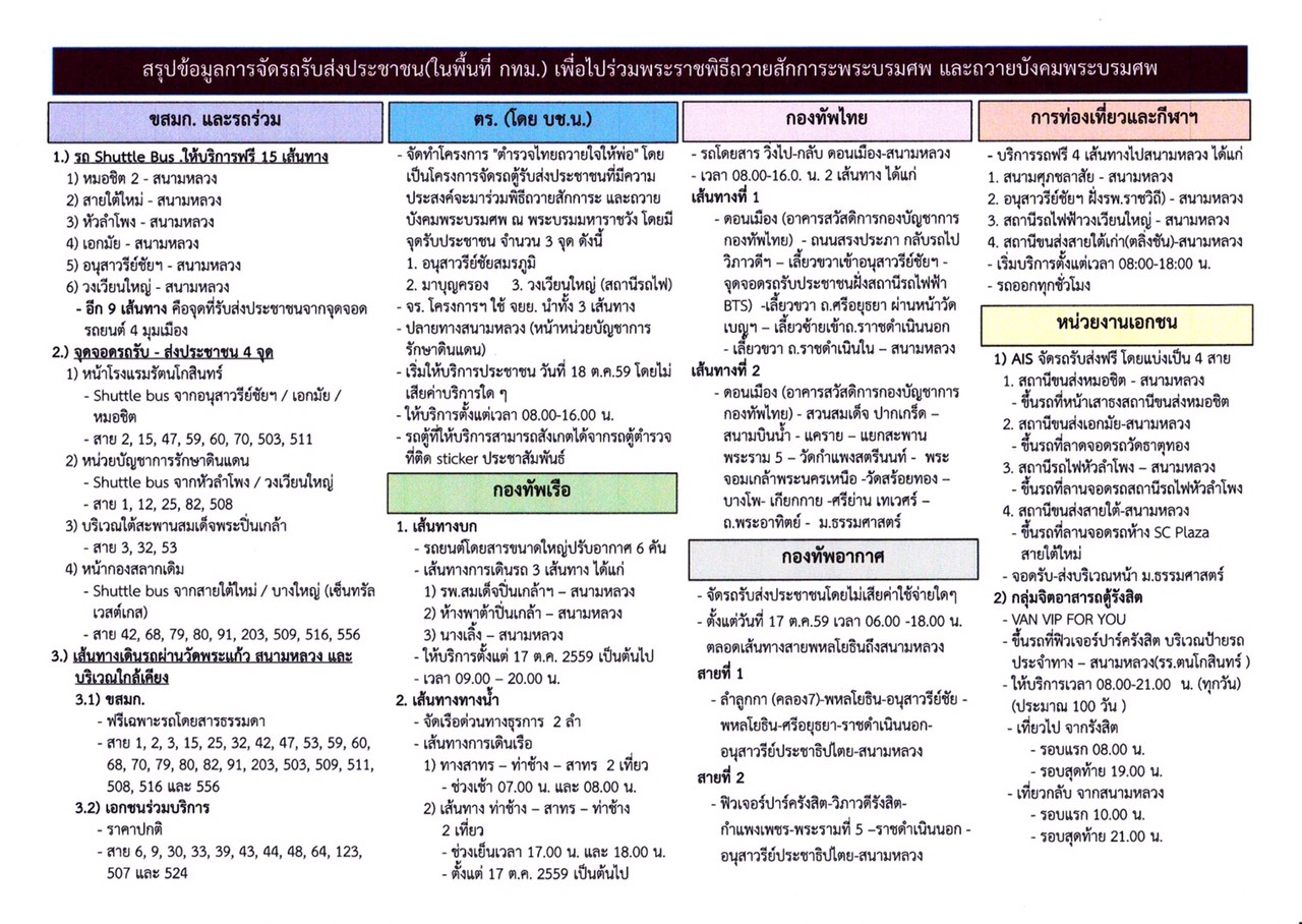 21 ต.ค.59 พล.ต.ต.จิรสันต์ แก้วแสงเอก รักษาราชการแทนผู้บังคับการตำรวจจราจร แนะนำให้หลีกเลี่ยงเส้นทางประจำวันศุกร์ ที่ 21 ตุลาคม 2559 ดังนี้ ตามที่ กองบังคับการตำรวจจราจรได้แจ้งข่าวประชาสัมพันธ์ให้ประชาชนทราบกรณีกระทรวงพาณิชย์จัดงาน “ร่วมใจแสดงความอาลัย” ลดราคาจำหน่ายสินค้าเสื้อผ้า เครื่องแต่งกาย ไว้ทุกข์ ระหว่างวันที่ 21-24 ตุลาคม 2559 เวลา 10.00-20.00 น. ณ อาคารแสดงสินค้า กรมส่งเสริมการค้าระหว่างประเทศ ถนนรัชดาภิเษก กรุงเทพมหานคร นั้น