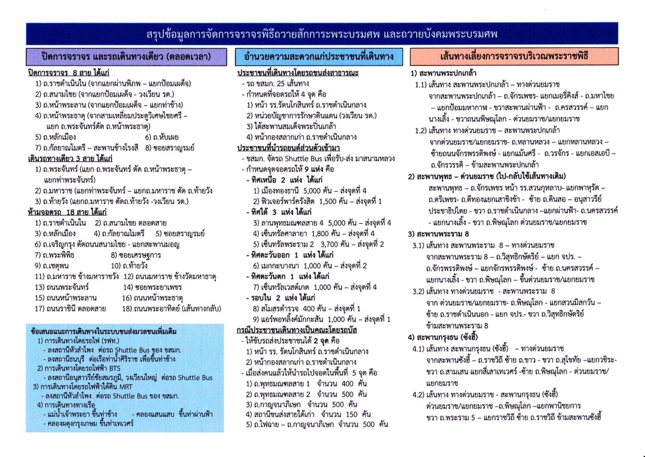 จึงขอประชาสัมพันธ์ให้พี่น้องประชาชนผู้ใช้รถใช้ถนนได้รับทราบ หากจำเป็นจะต้องใช้เส้นทางดังกล่าว ควรเตรียมความพร้อมและวางแผนในการเดินทาง หากต้องการสอบถามข้อมูลเส้นทาง แจ้งอุบัติเหตุจราจร และข้อมูลสภาพจราจรเพิ่มเติมสามารถสอบถามได้ที่ ศูนย์ควบคุมและสั่งการจราจร (บก.02) หมายเลขโทรศัพท์ 1197 ได้ตลอด 24 ชั่วโมง หรือ WWW.TRAFFICPOLICE.GO.TH