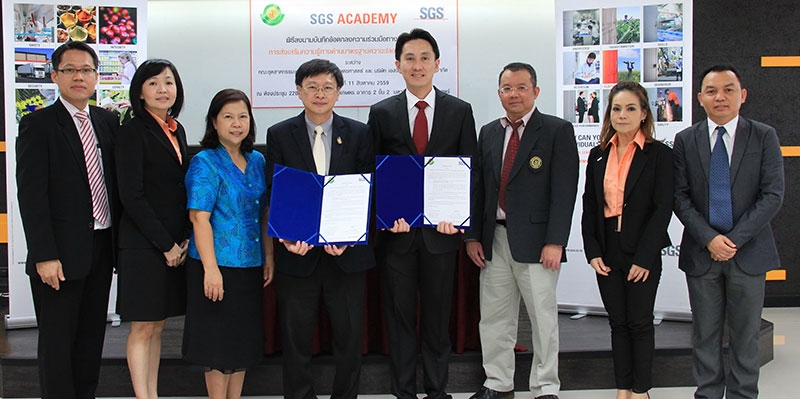 ความร่วมมือด้านวิชาการ : มนตรี ตั้งเติมสิริกุล ผจก.ทั่วไป แผนกการรับรองระบบและพัฒนาธุรกิจ บจ.เอสจีเอส ประเทศไทย บริษัทชั้นนำในด้านการตรวจสอบมาตรฐานความปลอดภัยด้านอาหารของประเทศไทย ร่วมลงนามบันทึกข้อตกลงความร่วมมือโครงการ CSR ให้บริการทางวิชาการ “ความรู้พื้นฐานด้านกฎหมายอาหารและการประยุกต์ใช้ข้อกำหนดมาตรฐานความปลอดภัยอาหารสากล เพื่องานพัฒนาผลิตภัณฑ์อาหาร และหลักการตรวจประเมินภายในระบบคุณภาพมาตรฐาน” กับ ผศ.ดร.ธนะบูลย์ สัจจาอนันตกุล คณบดีคณะอุตสาหกรรมเกษตร ม.เกษตรศาสตร์ ณ ม.เกษตรศาสตร์