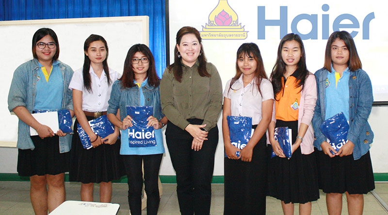 กรณีศึกษาสู่ความสำเร็จ : ประภัสสร สุภาพ ผู้ช่วยรองประธาน ฝ่ายพัฒนาและสื่อสารองค์กร กลุ่ม บ.ไฮเออร์ ประเทศไทย ได้รับเกียรติเป็นตัวแทนบริษัท เพื่อบรรยายพิเศษ ในหัวข้อ “การทำการตลาดบนโลกออนไลน์ Digital Marketing” โดยยกกรณีศึกษาของ ไฮเออร์ประเทศไทย ที่ประสบความสำเร็จจากการตลาดบนโลกออนไลน์ ในปีที่ผ่านมา ให้แก่นักศึกษาชั้นปีที่ 3 สาขาวิชาการตลาด คณะบริหารศาสตร์ จำนวนกว่า 50 คน ณ ม.อุบลราชธานี