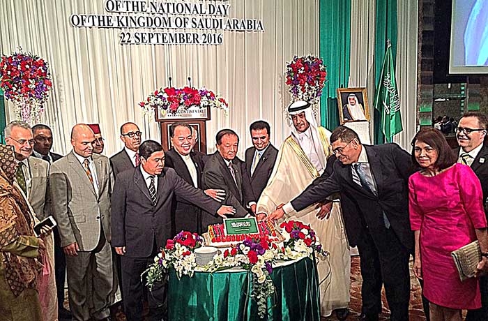 วันชาติซาอุฯ : H.E. Mr.Abdalelah Mohammed A. Alsheaiby อุปทูตซาอุดีอาระเบียประจำราชอาณาจักรไทย จัดงานเลี้ยงเฉลิมฉลองในโอกาสครบรอบ “86 ปี วันชาติซาอุดีอาระเบีย” ท่ามกลางทูตานุทูตและแขกผู้มีเกียรติต่างๆ มากมาย ณ โรงแรม Inter Continental Bangkok