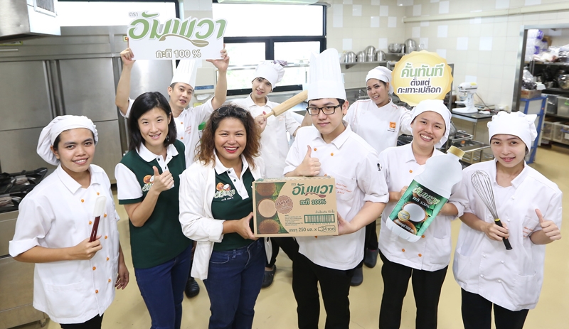 สนับสนุนมืออาชีพ : ดวงใจ สวัสดี ผจก.ผลิตภัณฑ์กะทิ “อัมพวา” บจ.เอเซียติค อุตสาหกรรมเกษตรเป็นตัวแทนส่งมอบความสดจาก “อัมพวา” กะทิ 100% ให้กับสถาบันสอนทำอาหารชั้นนำและเป็นการสนับสนุนผู้เรียนที่จะก้าวขึ้นไปเป็นเชฟมืออาชีพในอนาคตได้ทดลองใช้กะทิคุณภาพ พร้อมนำร่องกิจกรรมที่โรงเรียนการอาหารนานาชาติสวนดุสิต ม.สวนดุสิต โดยมีคณะอาจารย์และนักโภชนาการ นำโดย อ.ประภัสสร กุลศรี หน.โครงการอบรมอาหารไทย เป็นตัวแทนรับมอบ