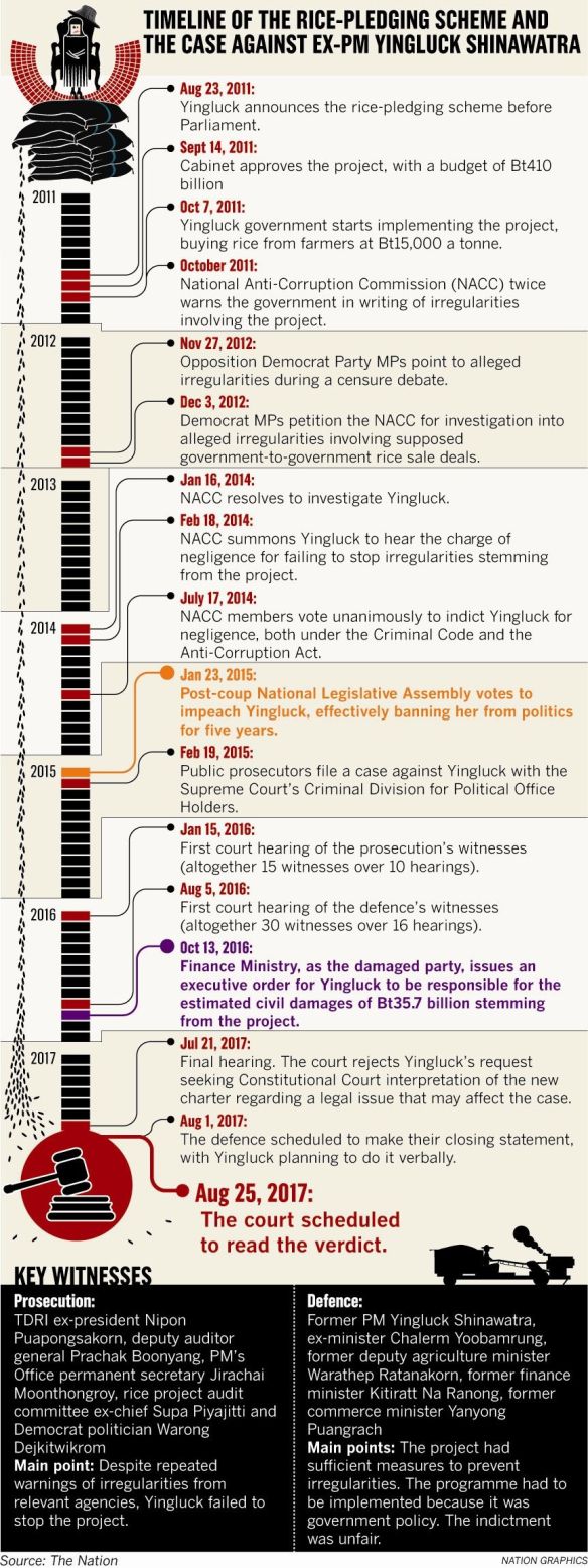 THE high court has set August 25 to deliver its verdict in the criminal negligence case against former premier Yingluck Shinawatra stemming from her government’s corruption-plagued rice-pledging scheme.