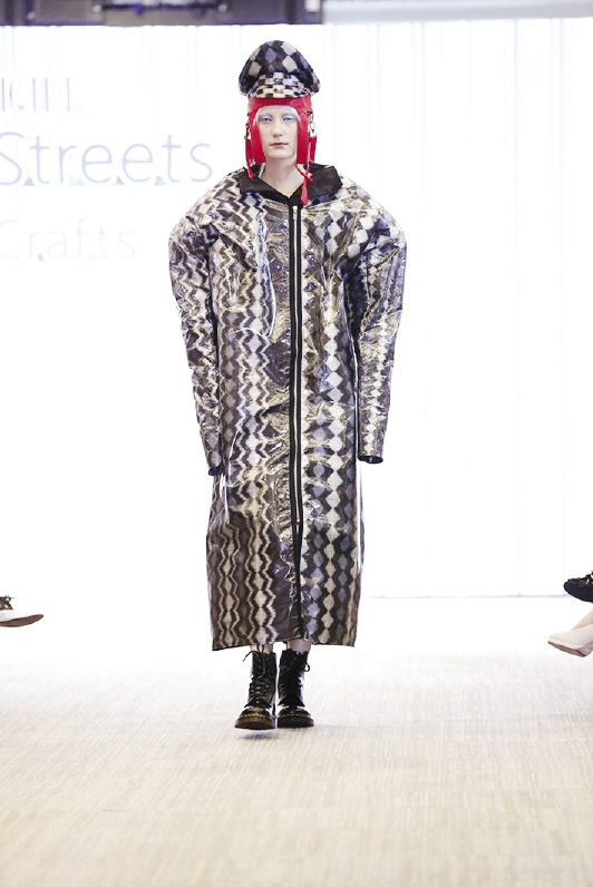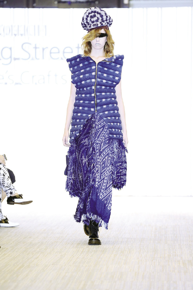แฟชั่นโชว์ได้เปิดตัวด้วยการนำความเด่นของวัสดุคือผ้าไหมที่มีความเงาและความหรูหรา ผสมกับผ้าสังเคราะห์ที่มีความทนทานง่ายต่อการบำรุงรักษา นำมาทอรวมกันอย่างลงตัวเพื่อลดทอนจุดด้อยของแต่ละวัสดุ ทั้งความบอบบางและการบำรุงรักษาที่ยากของผ้าไหม มาประยุกต์ทอร่วมกับวัสดุสังเคราะห์ด้วยผ่านภูมิปัญญาท้องถิ่น ที่ได้นำผ้าไทยพื้นบ้านมาดีไซน์ใหม่ให้เกิดความร่วมสมัยสู่ความเป็นสากล และเมื่อถึงเวลา…เหล่านางแบบชั้นนำก็ได้ปรากฏตัวในชุดสุดตระการตา ที่มีจุดเด่นด้วยผ้าไทยพื้นบ้าน ไม่ว่าจะเป็น ผ้าฝ้าย หรือผ้าไหมมัดหมี่ผ้าไหมแพรวา มาผสมกับผ้าสังเคราะห์ และพิเศษสุดกับไฮไลท์ของโชว์ คือชุดฟินาเล่ที่มาด้วยชุดผ้าไหมมัดหมี่ ตัดเย็บผสมผสานกับผ้าสังเคราะห์ใส ออกมาในโทนสีเมทัลลิก ซึ่งมีนักแสดงสาวสุดฮอต “ศรีริต้า เจนเซ่น” มาร่วมเดินแฟชั่นโชว์ผ้าไทย ทำเอาสะกดสายตาผู้เข้าชมในความงดงามของชุดสุดพิเศษนี้ และแฟชั่นโชว์ครั้งนี้ได้นำเสนอความเป็นไทยสู่สากลผ่านงานหัตถศิลป์ได้อย่างลงตัว