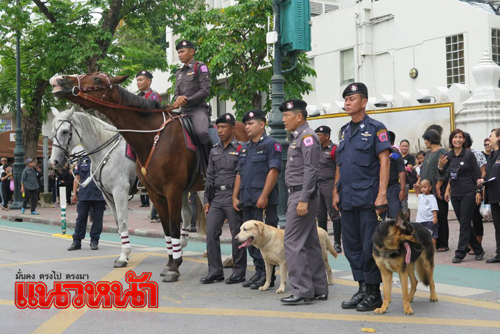 31 ต.ค.59 ผู้สื่อข่าวรายงานจากบริเวณถนนรอบพระบรมมหาราชวัง ได้มีเจ้าหน้าที่ สุนัข และม้า ออกปฎิบัติหน้าที่ เดินตรวจตราเพื่อป้องกันและรักษาความปลอดภัย รวมถึงเพื่อสร้างขวัญและกำลังใจให้พสกนิกรที่เดินทางเข้ามาสักการะและความอาลัยพระบาทสมเด็จพระปรมินทรมหาภูมิพลอดุลยเดช