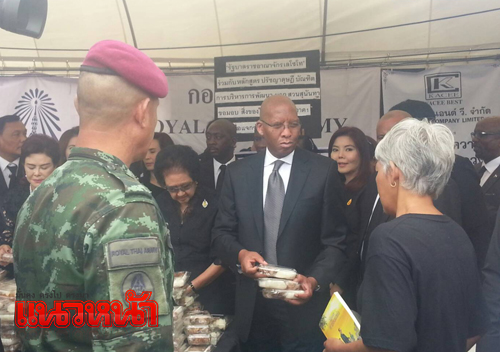 รมต.เลโซโทแจกข้าวเหนียวไก่ ให้ปชช.ที่มาถวายสักการะพระบรมศพ