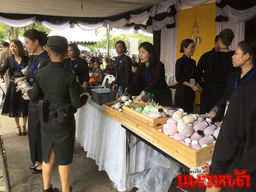 14 พ.ย.59 ผู้สื่อข่าวรายงาน ที่เต็นท์หน่วยทหารมหาดเล็กรักษาพระองค์ ในสมเด็จพระบรมโอรสาธิราชฯ สยามมกุฎราชกุมาร ซึ่งตั้งอยู่บริเวณท้องสนามหลวงฝั่งทิศใต้ ตรงข้ามประตูมณีนพรัตน์ พระบรมมหาราชวัง สมเด็จพระบรมโอรสาธิราชฯ สยามมกุฎราชกุมาร ทรงห่วงใยพสกนิกรที่เดินทางมาแสดงความอาลัย จึงทรงพระกรุณาโปรดเกล้าฯ ให้หน่วยทหารมหาดเล็กราชวัลลภรักษาพระองค์ ในสมเด็จพระบรมโอรสาธิราชฯ สยามมกุฎราชกุมาร นำอาหาร ขนม ผลไม้ ของว่าง และน้ำดื่มพระราชทานมาแจกจ่ายให้ประชาชน