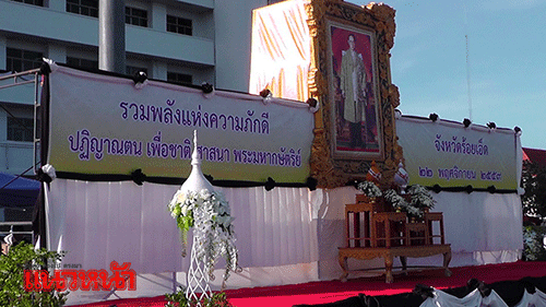 22 พ.ย.59 ผู้สื่อข่าวรายงานว่า เวลา 08.00 น. ณ หน้าศาลากลางจังหวัดร้อยเอ็ด จังหวัดร้อยเอ็ด จัดกิจกรรมรวมพลังแห่งความภักดี เพื่อร่วมรำลึกถึงพระบาทสมเด็จพระปรมินทรมหาภูมิพลอดุลยเดช